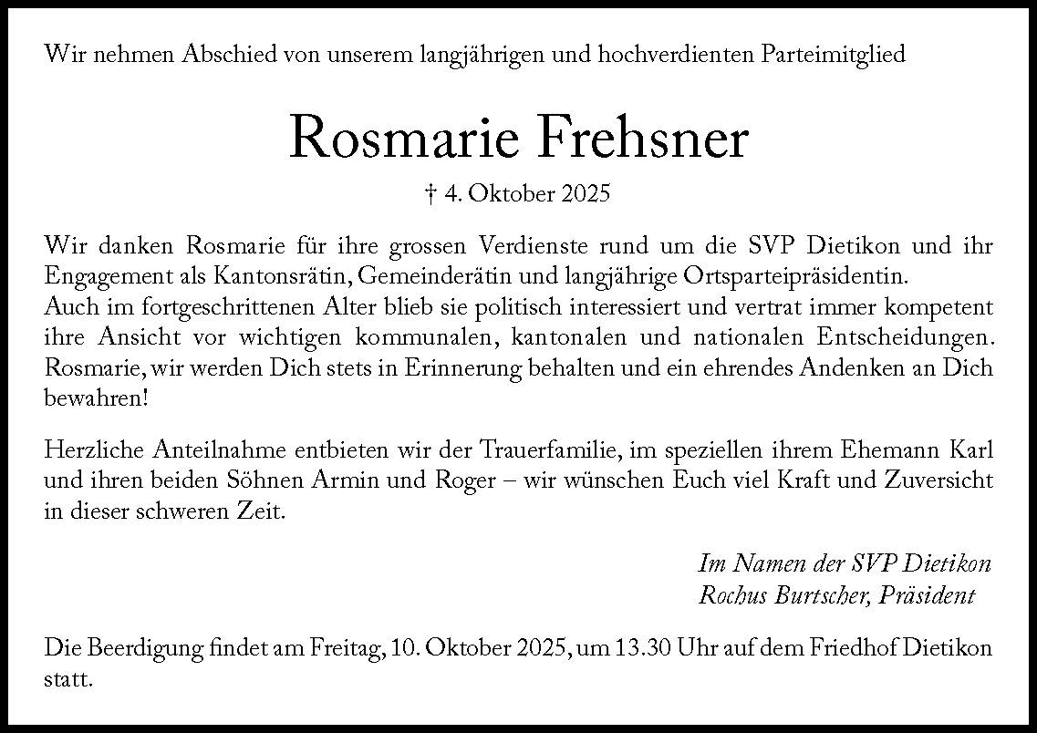 Am 28. September 2025 findet das Abstimmungswochenende statt. Die Parteimitglieder der SVP Dietikon und Umgebung trafen sich im Restaurant Heimat, um den Referenten zu den eidgenössischen und kantonalen Vorlagen zuzuhören. Den Auftakt machte Lea Sonderegger, Präsidentin der Jungfreisinnigen, die die «Volksinitiative Steuerrabatt» vorstellte. Der Vorschlag fand in der Versammlung grossen Anklang.